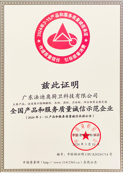 法迪奥是国内不锈钢全屋定制头部品牌、不锈钢橱柜行业技术标准主编单位、“有家就有佛山造”产业联盟发起单位。