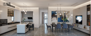 社交型厨房的开放式布局,让“厨房、餐厅、客厅”三大空间融合为一个整体。