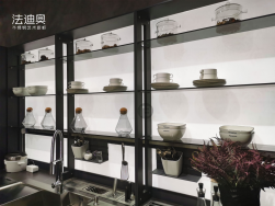 法迪奥第六代厨柜开创地脚抽、后档收纳系统,把有限空间高效利用起来。