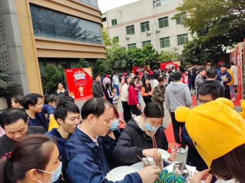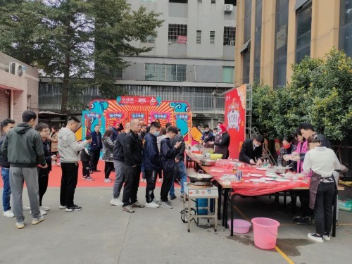 亲手为员工们烹制潮汕风味肠粉和饺子