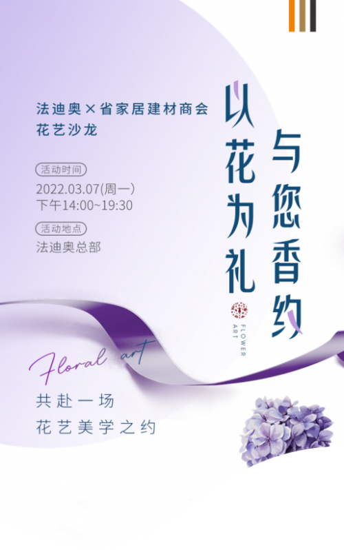 3月7日,法迪奥携手广东省家居建材商会,在法迪奥总部展厅主办了“以花为礼·与您香约”为主题的花艺沙龙。