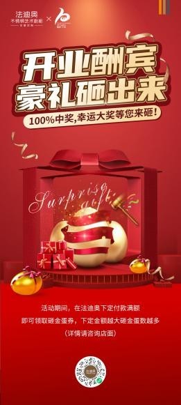 活动期间,在法迪奥下定付款满额,即可领取砸金蛋券,100%中奖。下定金额越大,砸金蛋次数越多。