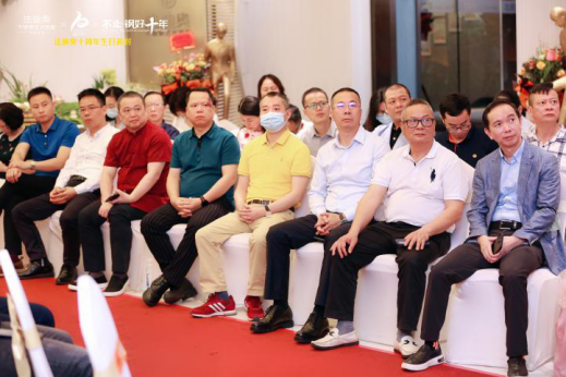 来自商会/协会、合作品牌的领导,珠三角区域经销商老板代表、VIP老客户代表,与法迪奥老员工、全体管理层,一起在现场见证了法迪奥不锈钢厨柜第10年的高光时刻!