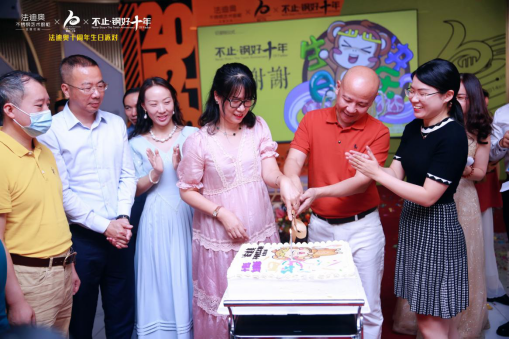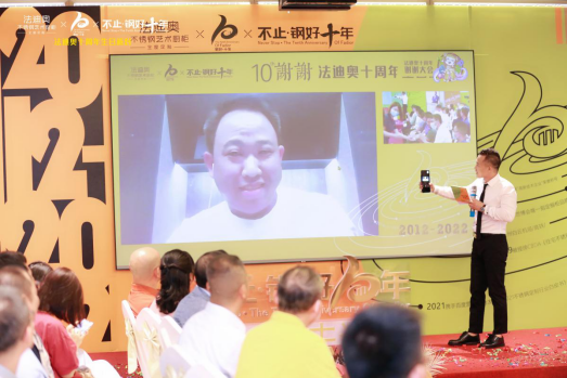 法迪奥不锈钢艺术厨柜10周岁庆祝仪式,现场所有嘉宾、直播间所有观众,共同为法迪奥庆生。