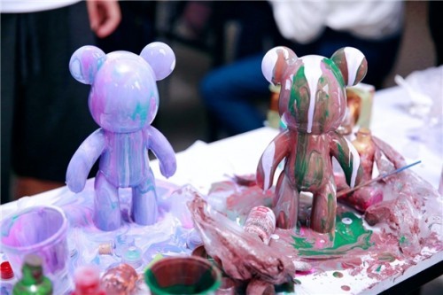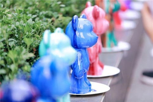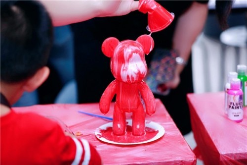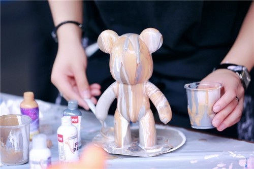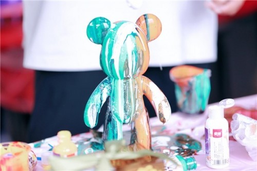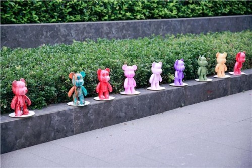 流体熊,是将多种不同的颜料叠加混合之后,倾倒在暴力熊上,形成炫丽而具有抽象艺术的色彩。