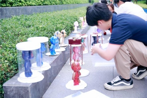 颜料自由流动间,充满了偶然性和不可复制的画面效果,从而让每一个流体熊拥有独一无二色彩。