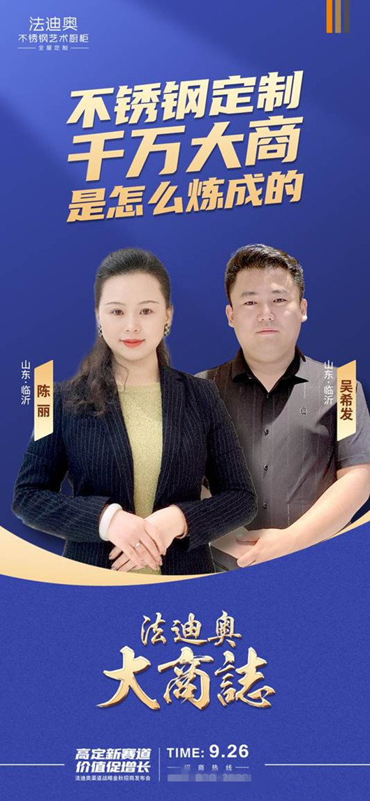 9月26日,法迪奥“高定新赛道·价值促增长”渠道战略金秋招商发布会,在佛山总部盛大举行,欢迎预约参加。