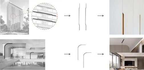 在这个案例中,设计师通过硬装上简单的几何形态、线框和线条有韵律、有规则地展开空间,大面积运用柔和而有层次的中性色调和局部对比色调。