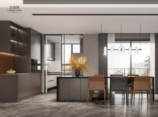 法迪奥不锈钢定制全案设计,通过不锈钢材料的应用,为家居带来的高质感的加成和差异化的价值,表达绿色可持续发展的共鸣情感。
