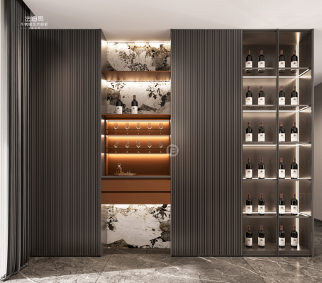 不锈钢酒柜,在收纳之余更突出了展示装饰的功能。