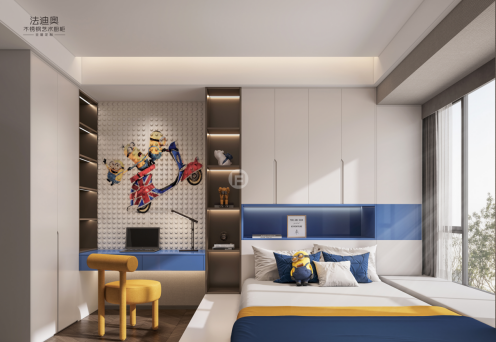 床头做收纳柜,与衣柜、书桌一体化,美观又省空间。
