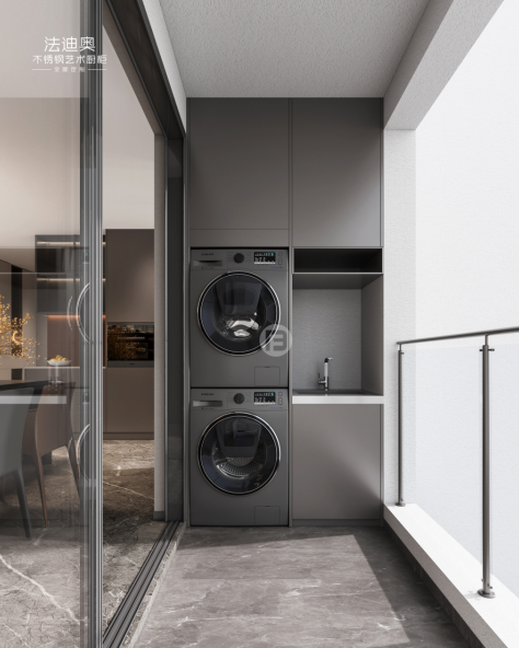 开放式的生活阳台,阳光常年直射,不锈钢阳台柜持久耐用,常年风吹雨晒环境下不怕板材变形开裂、受潮腐烂。