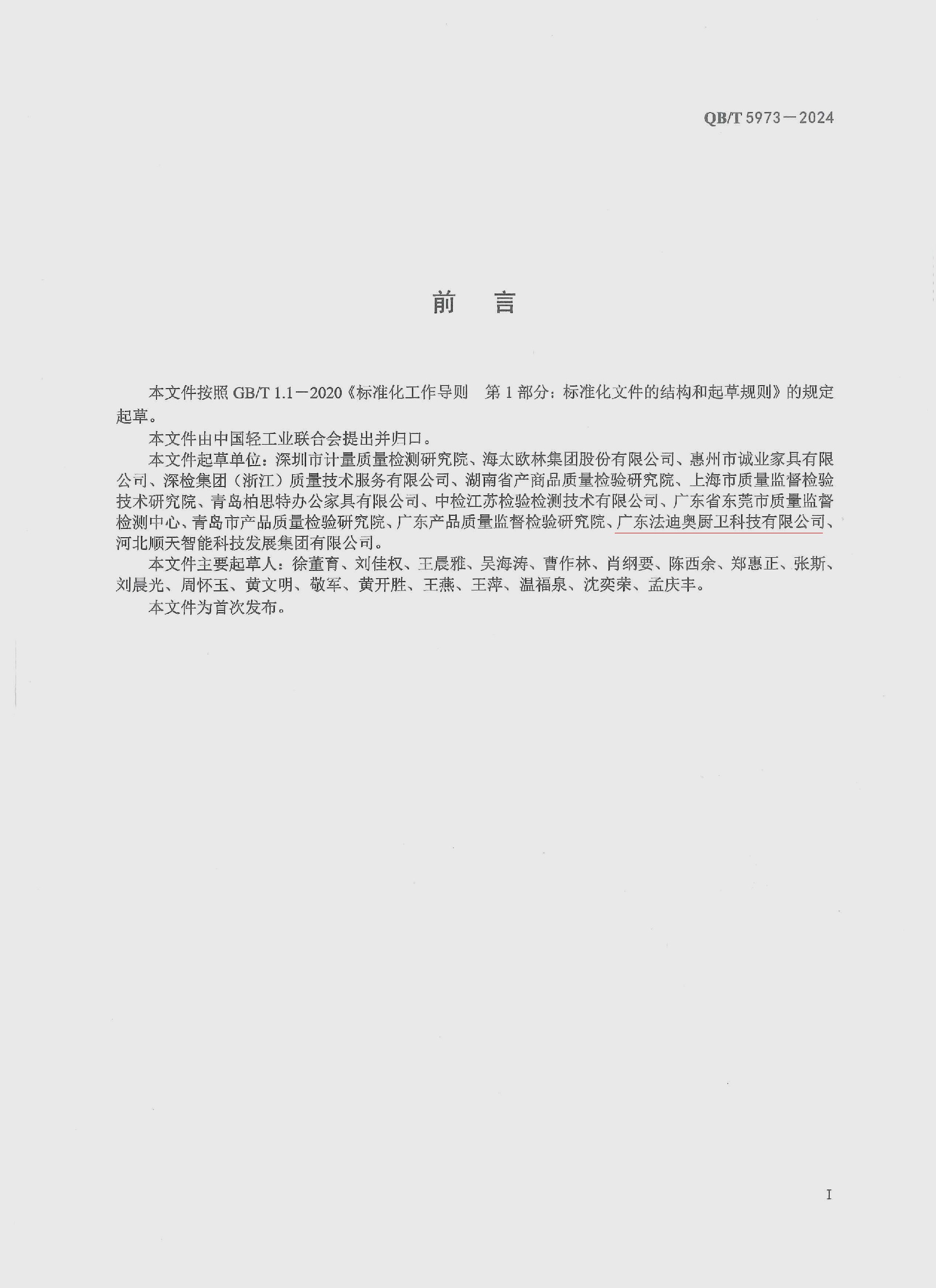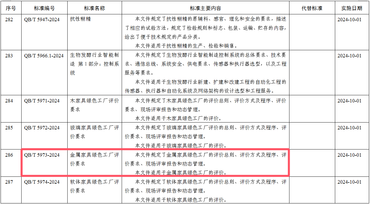 近日,由中国轻工业联合会归口,法迪奥等多家单位共同起草的《轻工行业标准·金属家具绿色工厂评价要求》(QB/T 5973-2024)(以下简称标准),经工业和信息化部正式发布实施。