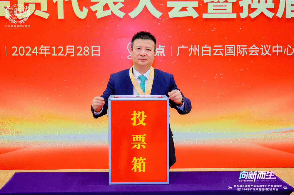 当日下午,在广东省家居建材商会第五届四次会员代表大会暨换届选举大会上,经全体理事会成员投票,法迪奥创始人沈奕荣董事长当选为第六届「理事会会长」。