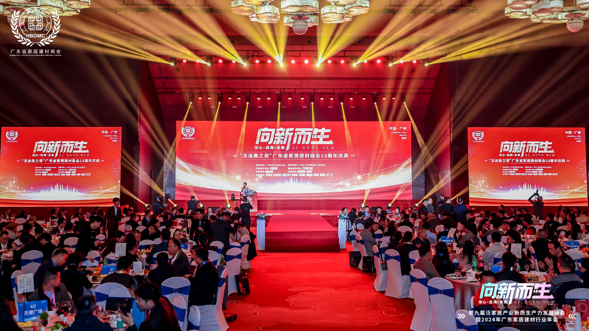 12月28日,由广东省家居建材商会主办的“法迪奥之夜”2024广东省家居建材商会23周年庆典暨第六届理事会在广州白云国际会议中心盛大举行。