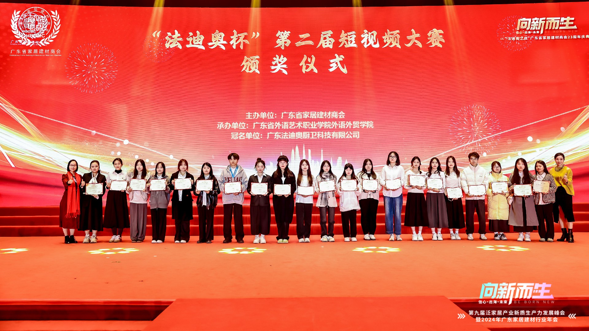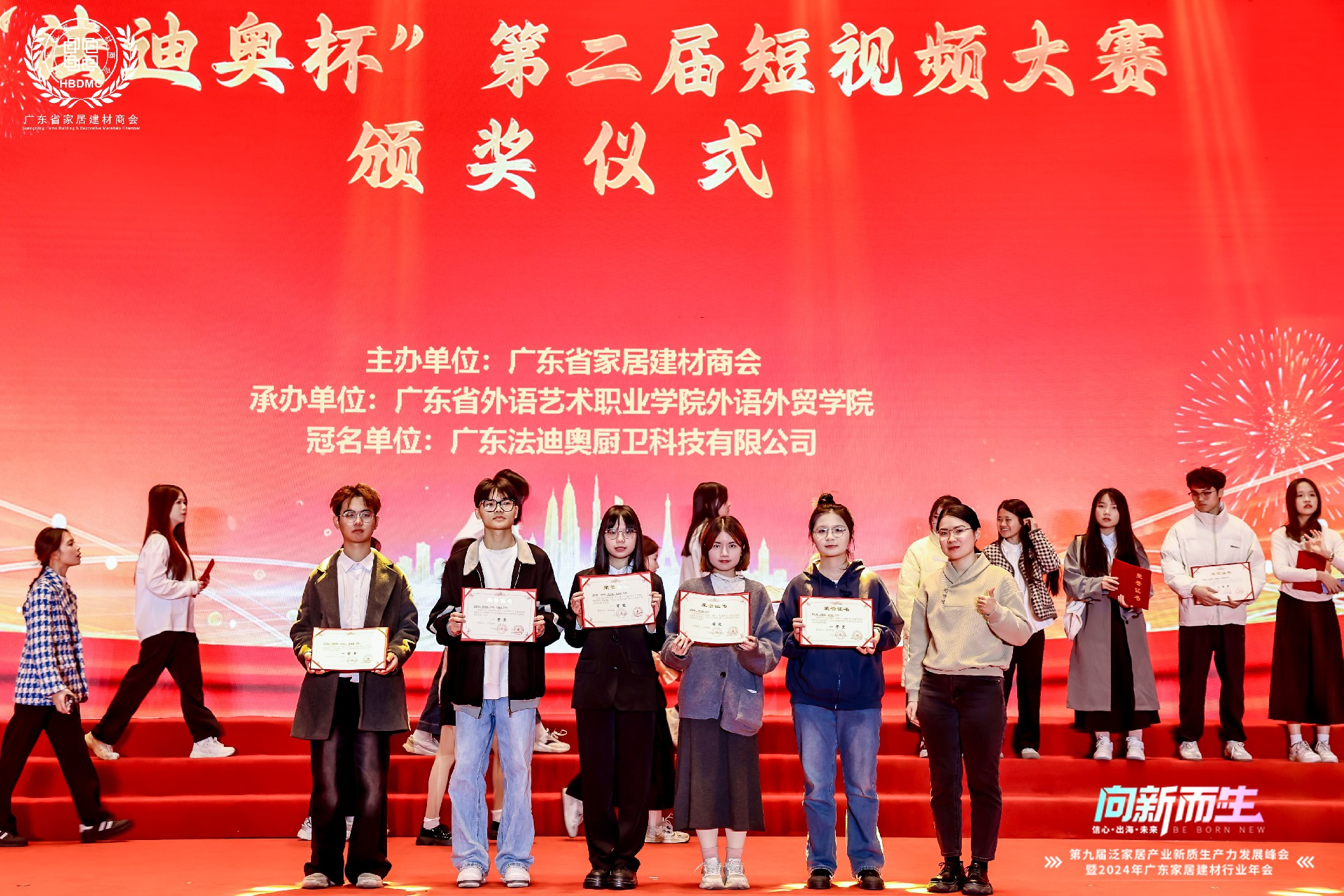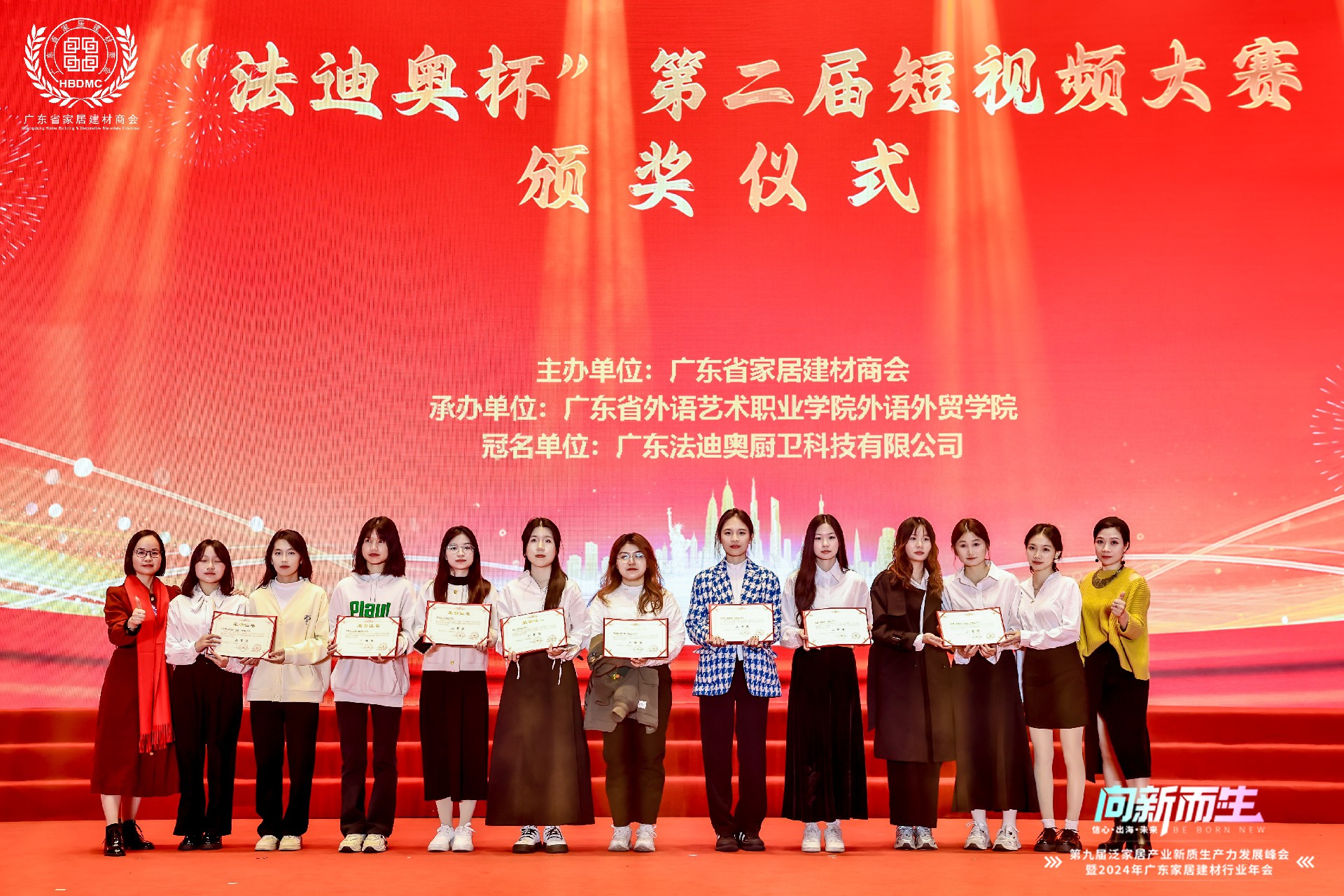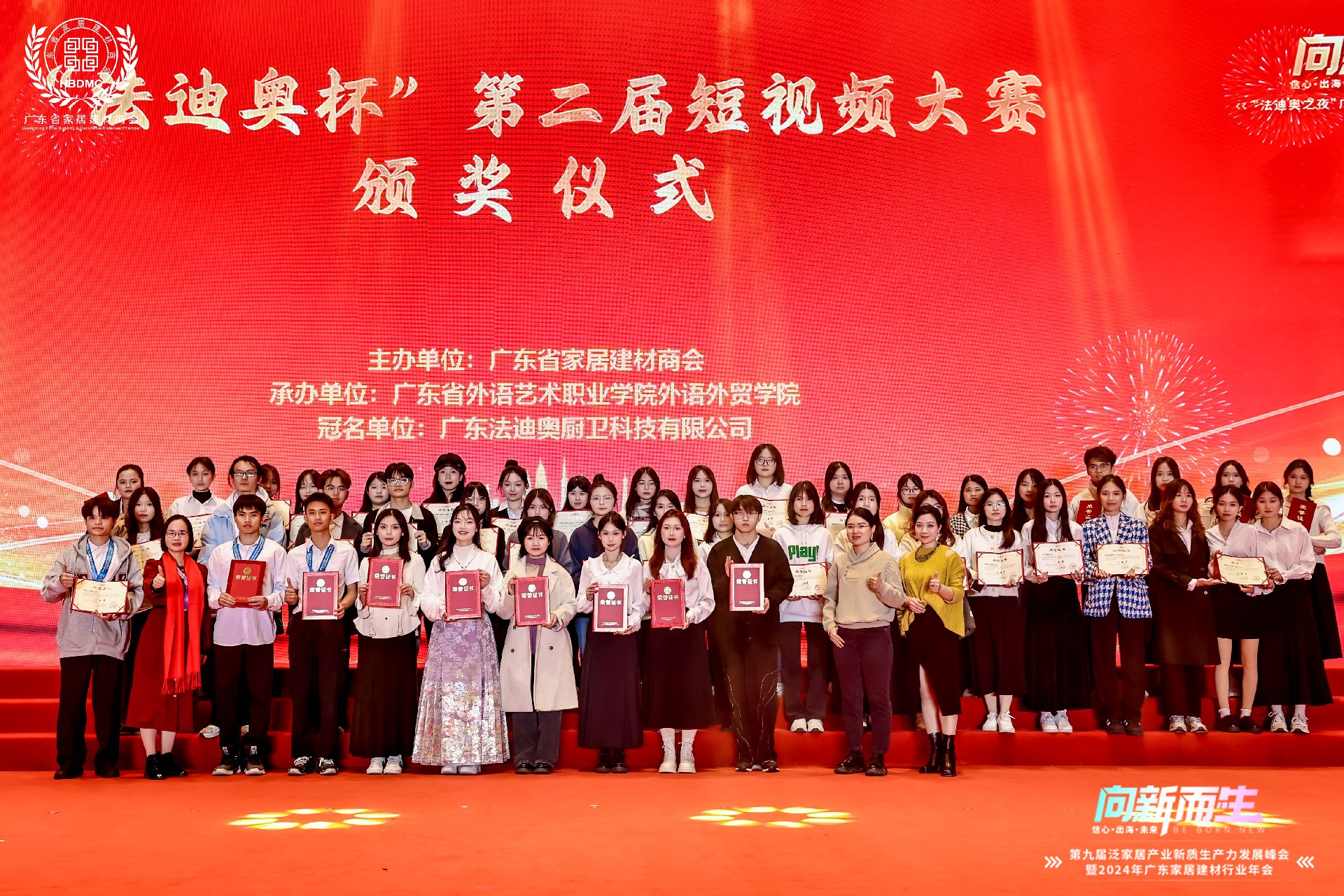 在晚会现场,由广东省家居建材商会主办、法迪奥独家冠名的「法迪奥杯」短视频大赛在万众瞩目中举行了颁奖盛典。