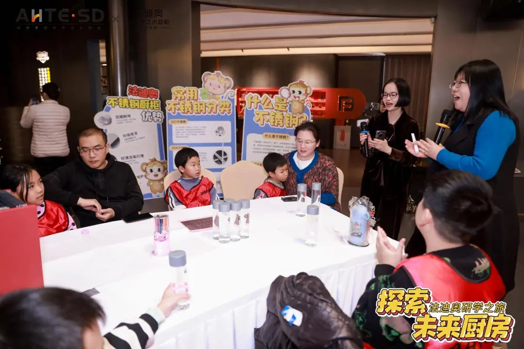 法迪奥创始合伙人/大客户总监欧阳灿球女士主持的《迪宝小课堂》是这次研学的一大亮点,“多一个家庭使用不锈钢,地球就少砍一棵树”的环保理念贯穿整个课堂。通过生动有趣的科学实践和展厅参观,孩子们直观地感受到了不锈钢材料的优势及其对环境的正面影响。激发孩子们对环保的兴趣与责任感,带动更多家庭参与到绿色生活。