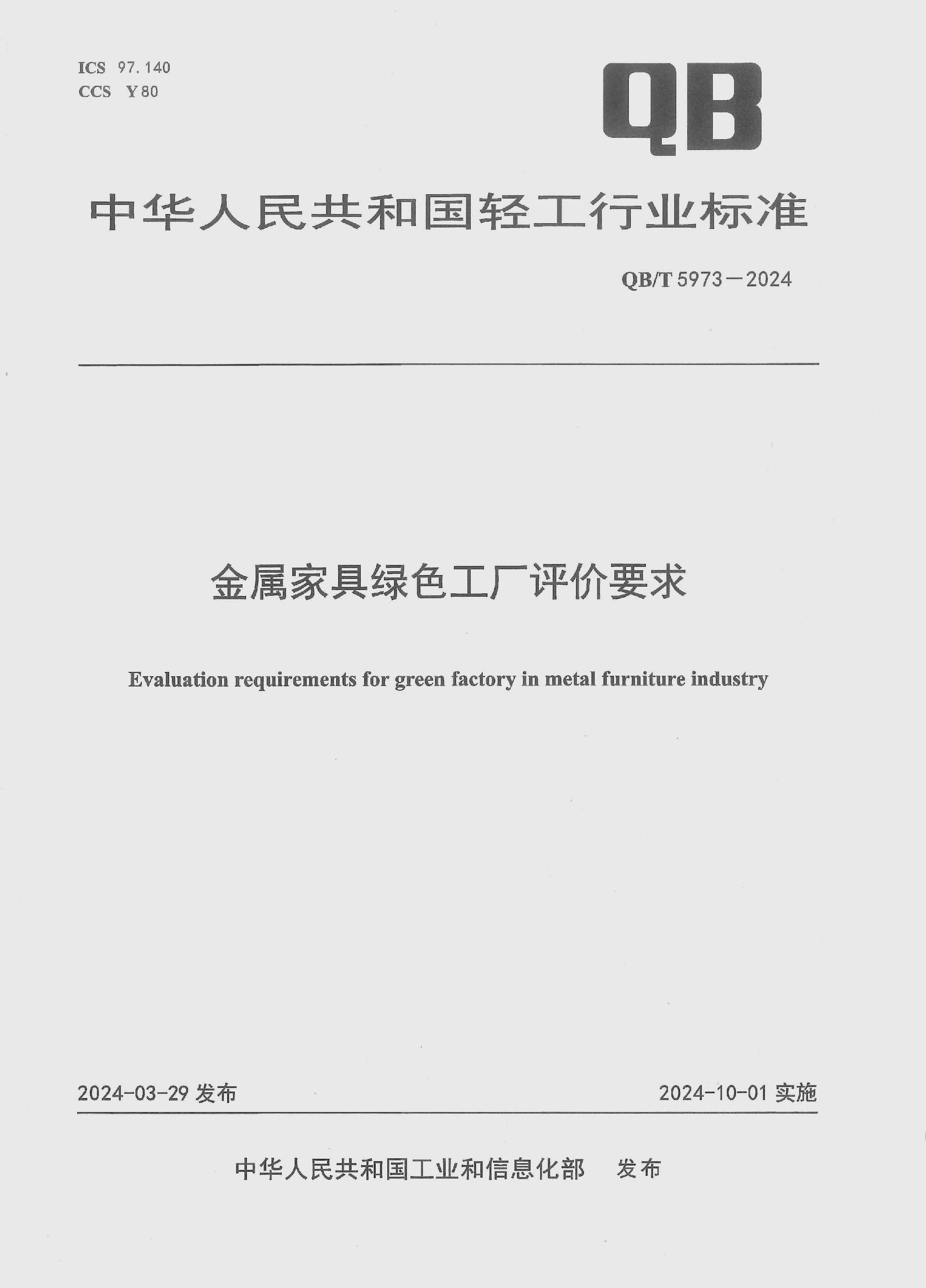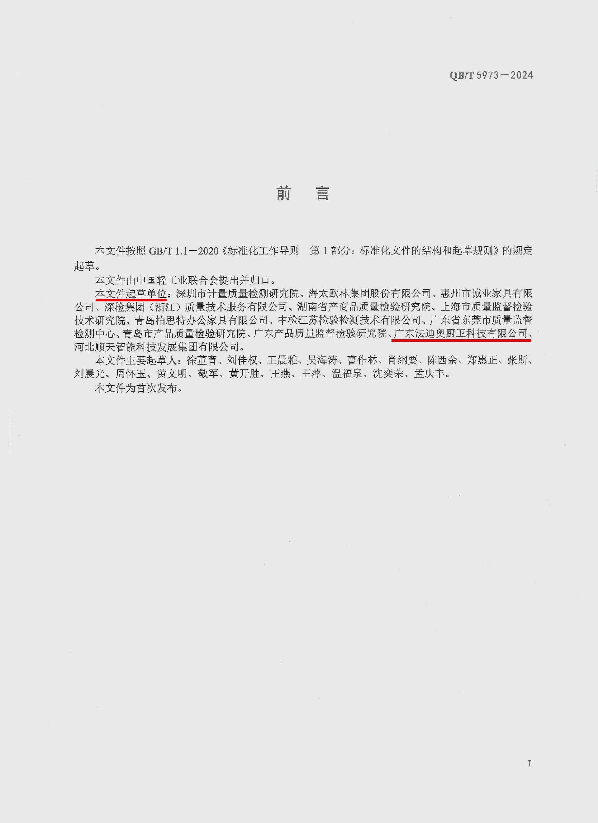 2024年,法迪奥参与起草的《金属家具绿色工厂评价体系-行业标准QB/T 5973-2024》由工信部正式公布实施