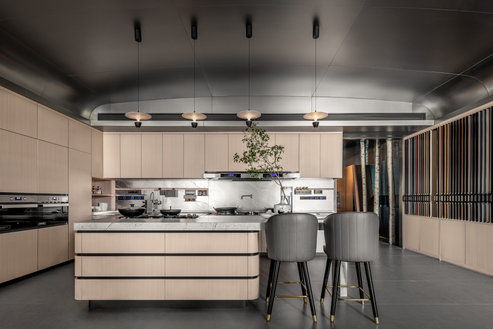 整座建筑由不锈钢打造而成,屋顶采用光伏绿电储能,屋内配合法迪奥不锈钢定制柜,实现0碳排放。