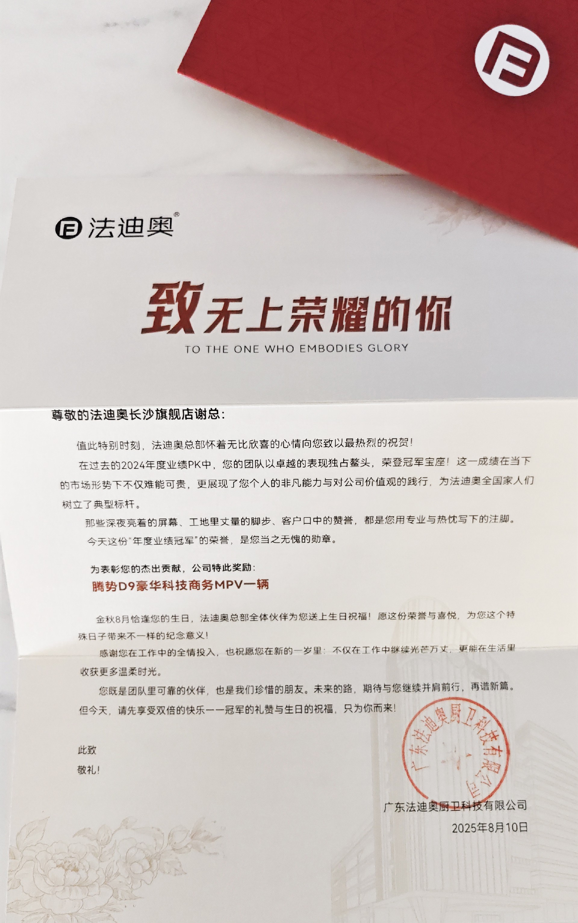 2025年8月16日,法迪奥在长沙举行了2024年度「业绩销冠奖」授车仪式。