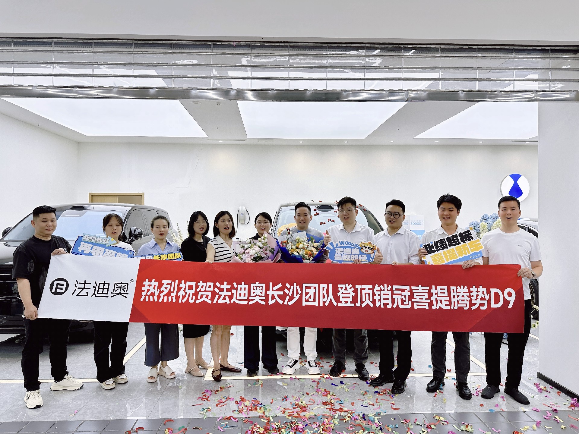 为嘉奖长沙团队的杰出贡献,法迪奥总部兑现承诺,奖励长沙店腾势D9豪华科技商务MPV一辆。