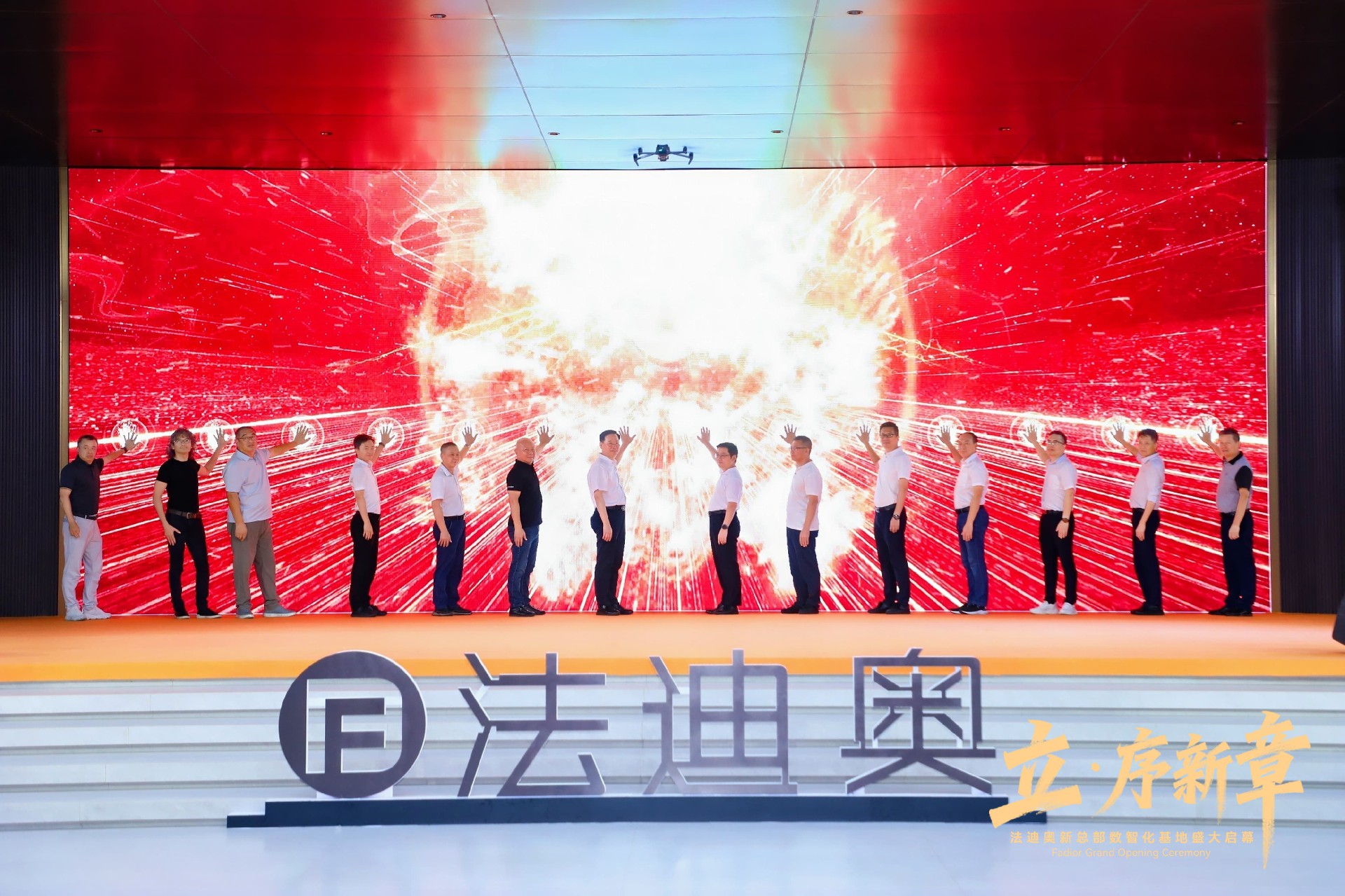 共同登台,摁下启动手印,宣布法迪奥新总部数智化基地正式启幕。