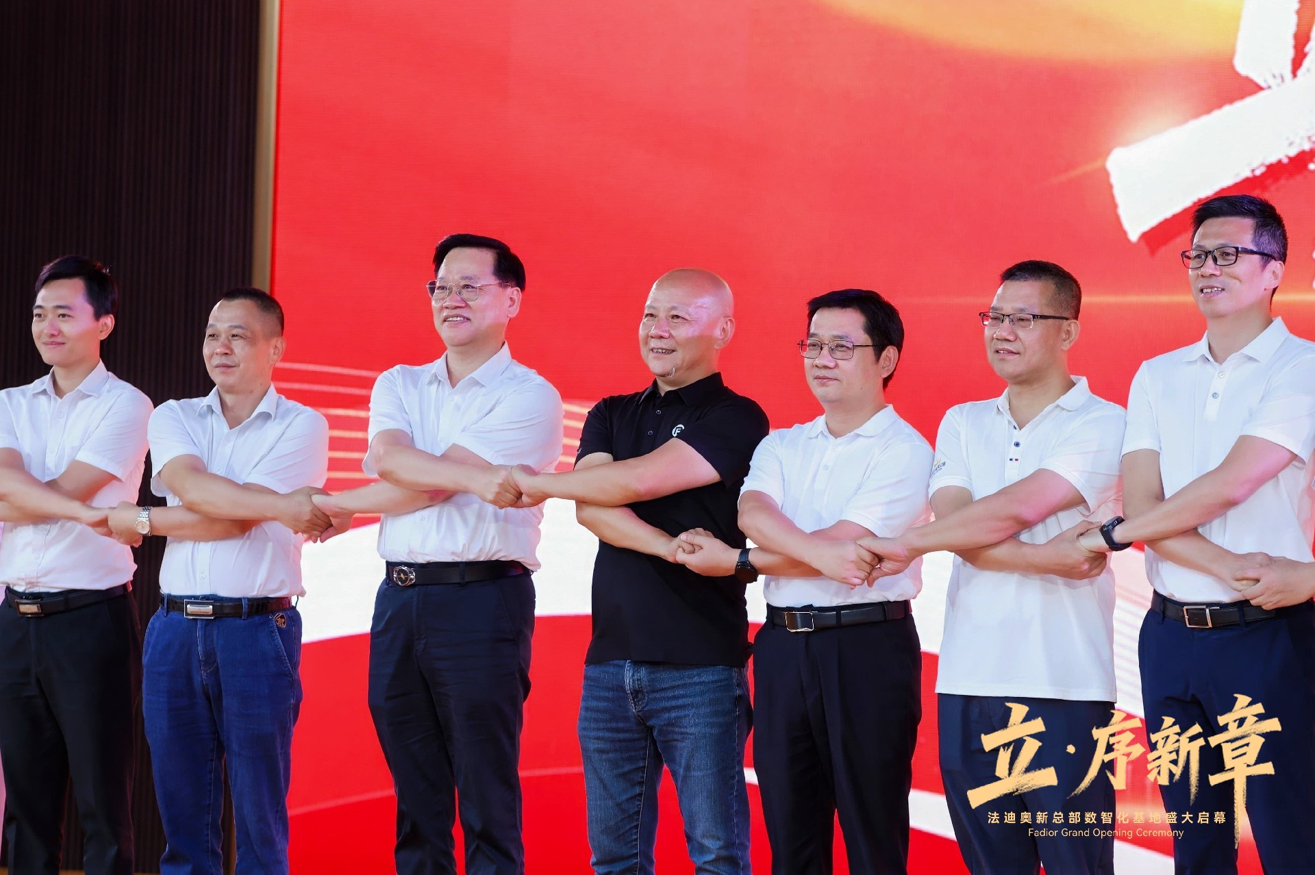 共同登台,举杯与领导嘉宾们共同庆贺法迪奥新总部数智化基地圆满落成。
