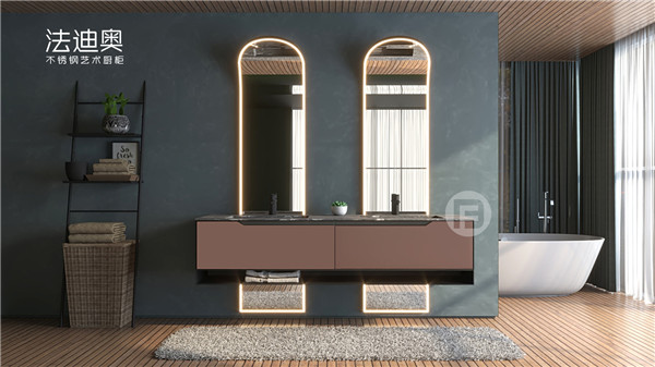 这款不锈钢卫浴柜通过融入酒店卫浴柜的风格,大胆的外观设计,让家里的卫生间可以做到跟酒店一样漂亮。