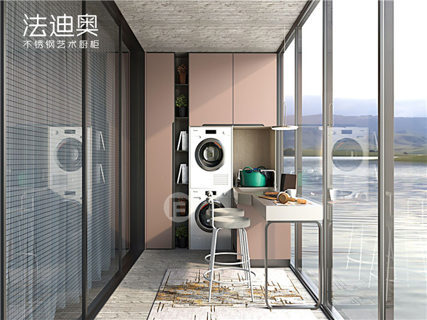 洗手盆外延出一个小吧台,让阳台柜不再是单一的洗涤收纳空间,同时也可以具备简单的社交功能。